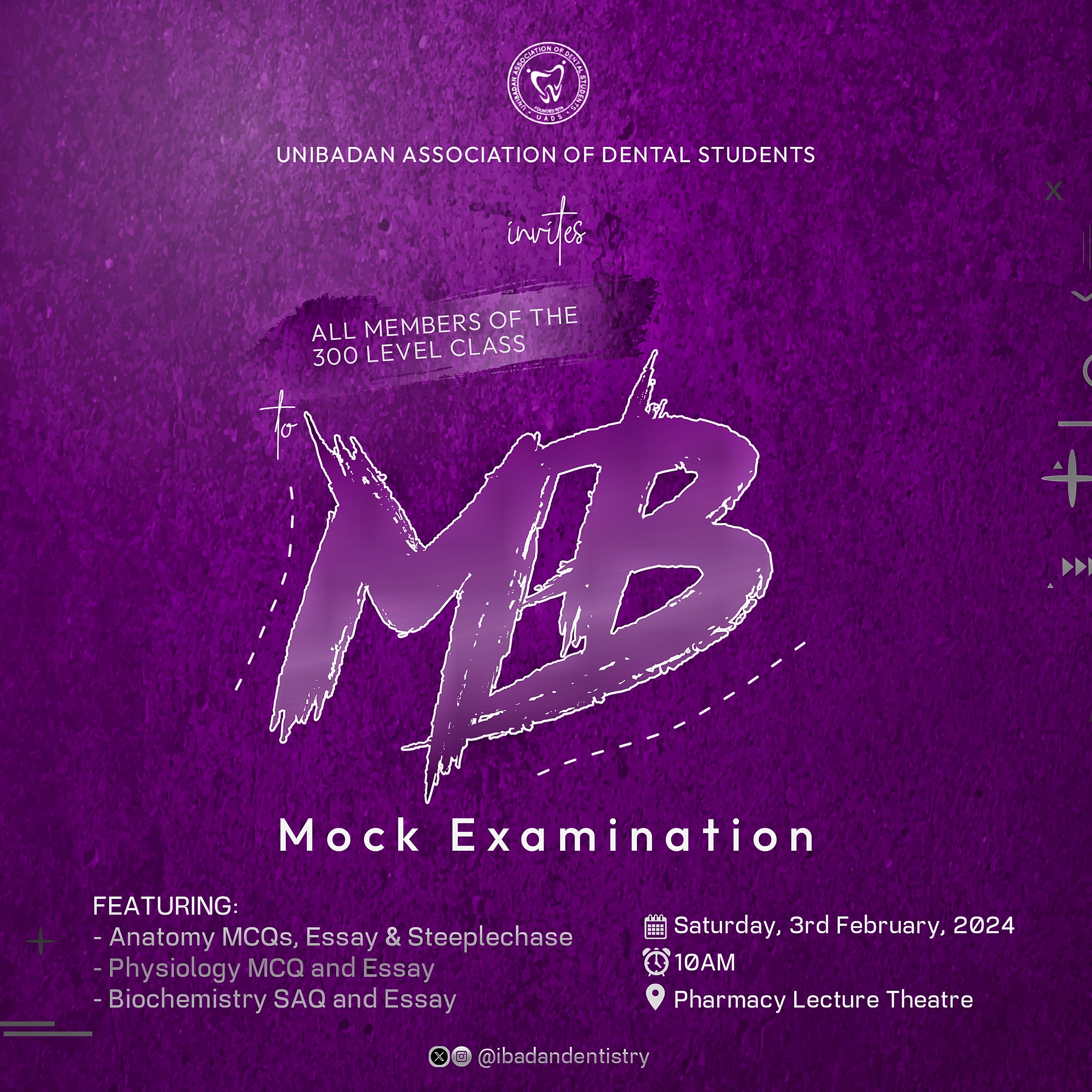 In preparation for the MB1 Examination, the Academic Committee has organized a mock examination, coming up on Saturday, 3rd of February 2024 at 10AM. All details are contained in the flyer above. The 300 eleven students are enjoined to come test themselves and Guage their preparedness.
